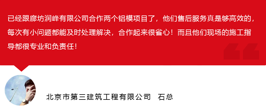 2019年6月13日,濰坊歌爾綠城項(xiàng)目部和中建三局代表一起,為五棵松集團(tuán)鋁?,F(xiàn)場(chǎng)技術(shù)指導(dǎo)王工送來了兩面錦旗,上面書寫著“以專業(yè)指導(dǎo)工程,以真誠服務(wù)客戶”“工作盡職盡責(zé),服務(wù)快速到位”以感謝五棵松鋁模在濰坊歌爾綠城項(xiàng)目中專業(yè)高效的指導(dǎo)工作和貼心真誠的優(yōu)質(zhì)服務(wù)。 在項(xiàng)目施工中,五棵松集團(tuán)的鋁模產(chǎn)品穩(wěn)定性好,早拆體系方便快捷效率高。拆模后,混凝土表面光滑如鏡面,清晰可照人影。優(yōu)質(zhì)的產(chǎn)品,專業(yè)貼心的服務(wù)使得濰坊歌爾綠城項(xiàng)目得以高效快速的展開。兩面沉甸甸的錦旗便是對(duì)五棵松鋁模最大的肯定與鼓勵(lì)。 產(chǎn)品和服務(wù)...
