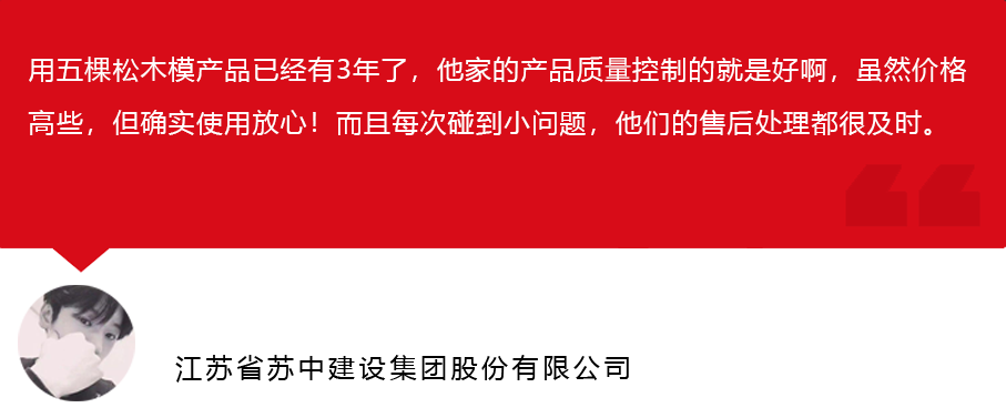 五棵松集團(tuán)本著“重品質(zhì)、講信譽(yù)”的原則,在建筑模板行業(yè)享有盛譽(yù)。質(zhì)優(yōu)價(jià)平的產(chǎn)品、以誠相待的態(tài)度,更為集團(tuán)贏得廣大客戶的支持和信賴。